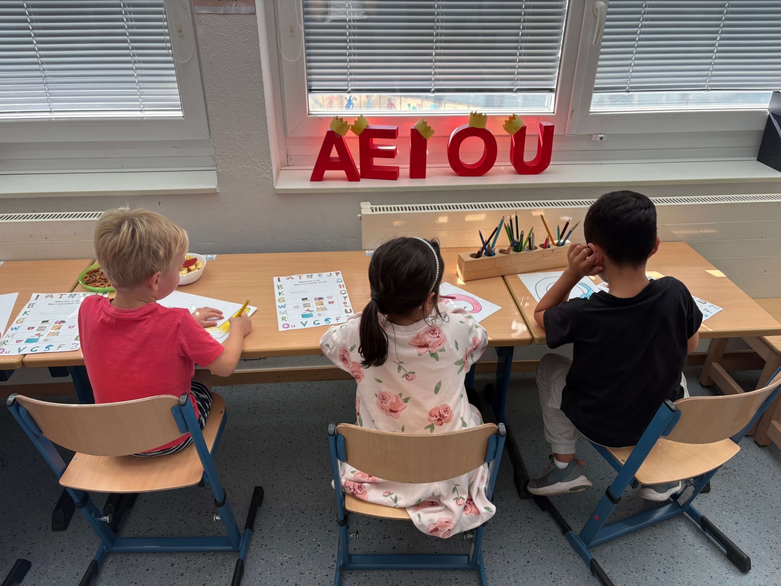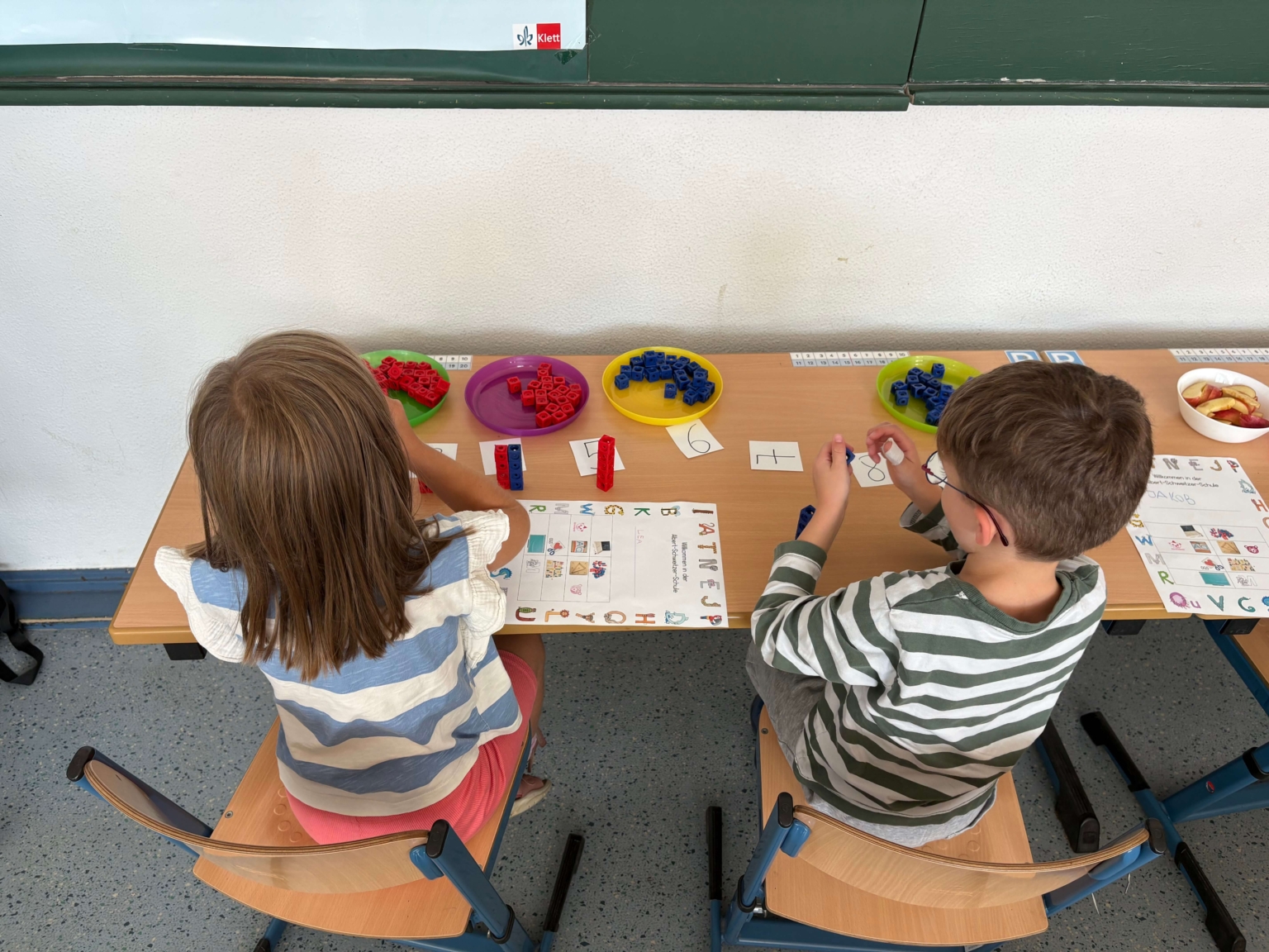 Während die Eltern in Ruhe dem Vortrag folgen konnten, hatten die Kinder Gelegenheit, erste „Schulluft“ zu schnuppern. In zwei Klassenräumen warteten verschiedene Stationen auf sie: Auf der digitalen Tafel, im Sand oder auf dem Papier konnten Buchstaben nachgespurt werden. Außerdem gab es die Möglichkeit, mit Steckwürfeln zu zählen oder kleine Bastelarbeiten zu gestalten.