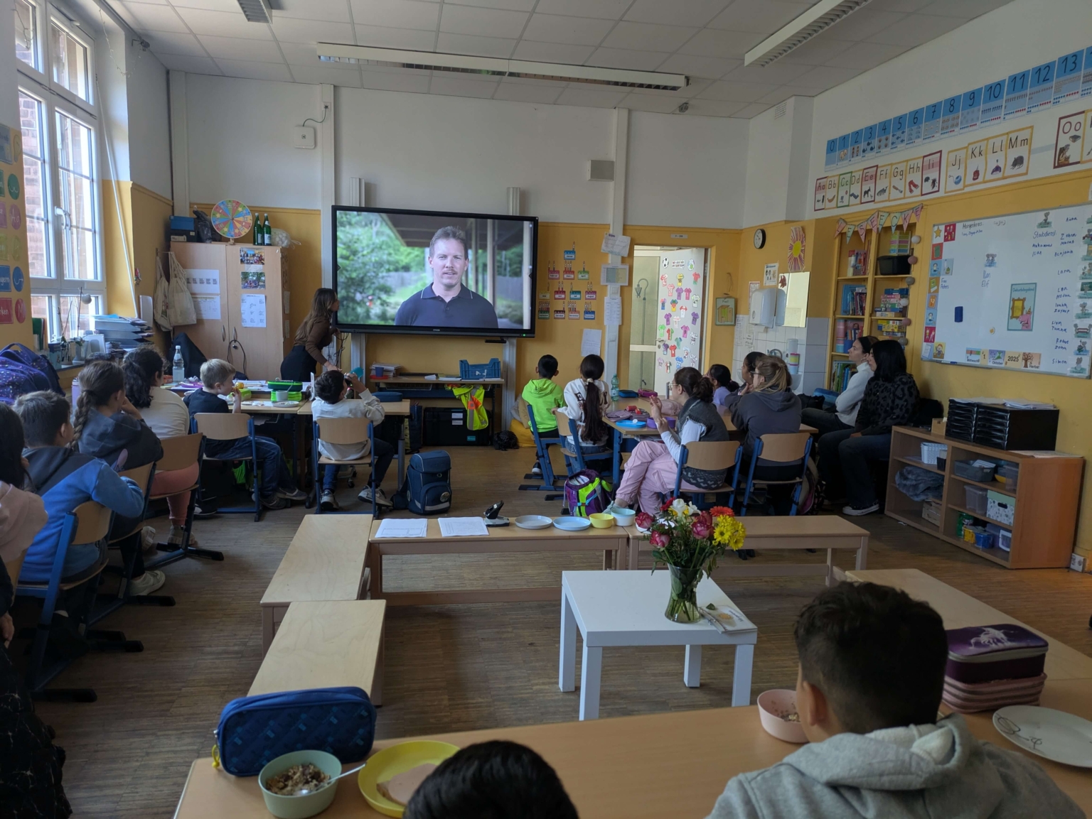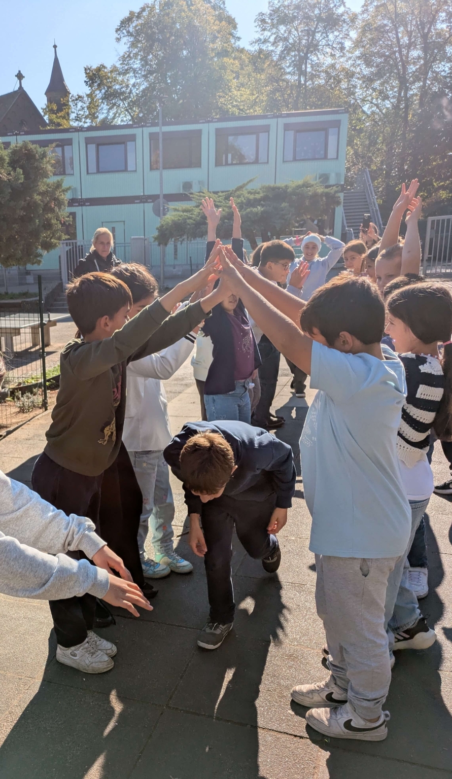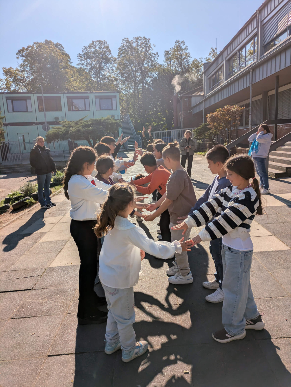 Am Mittwoch, den 1.10.2026 haben wir mit unseren 4. Klassen am Aktionstag „Stabile Sache – Bewegt durch den Schulalltag“ teilgenommen. Für die Koalaklasse fand an diesem Tag in der 3. Stunde eine zusätzliche Bewegungsstunde, in der Elefantenklasse in der 4. Stunde eine extra Bewegungsstunde statt. Begrüßt wurden beide Klassen zu Beginn mit einer Videobotschaft von Bundestrainer Julian Nagelsmann. Dann ging es für mehrere Kooperationsspiele bei strahlendem Sonnenschein raus auf den Schulhof. Der Koalaklasse machte das Laufen durch die lebendige „Laolawelle“ besonders Spaß, den Elefanten das Bilden von „Fangemeinden“ bei „Schere, Stein, Papier“. Die „Lava-Flussüberquerung“ war für beide Gruppen eine ganz schöne Herausforderung, die es zu meistern galt.